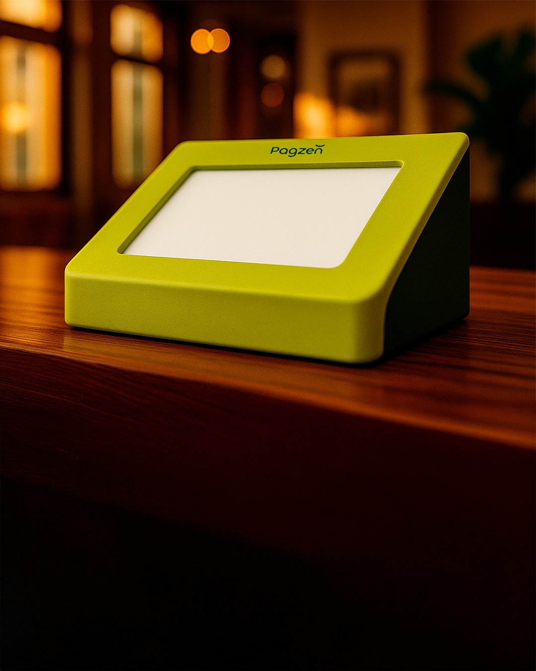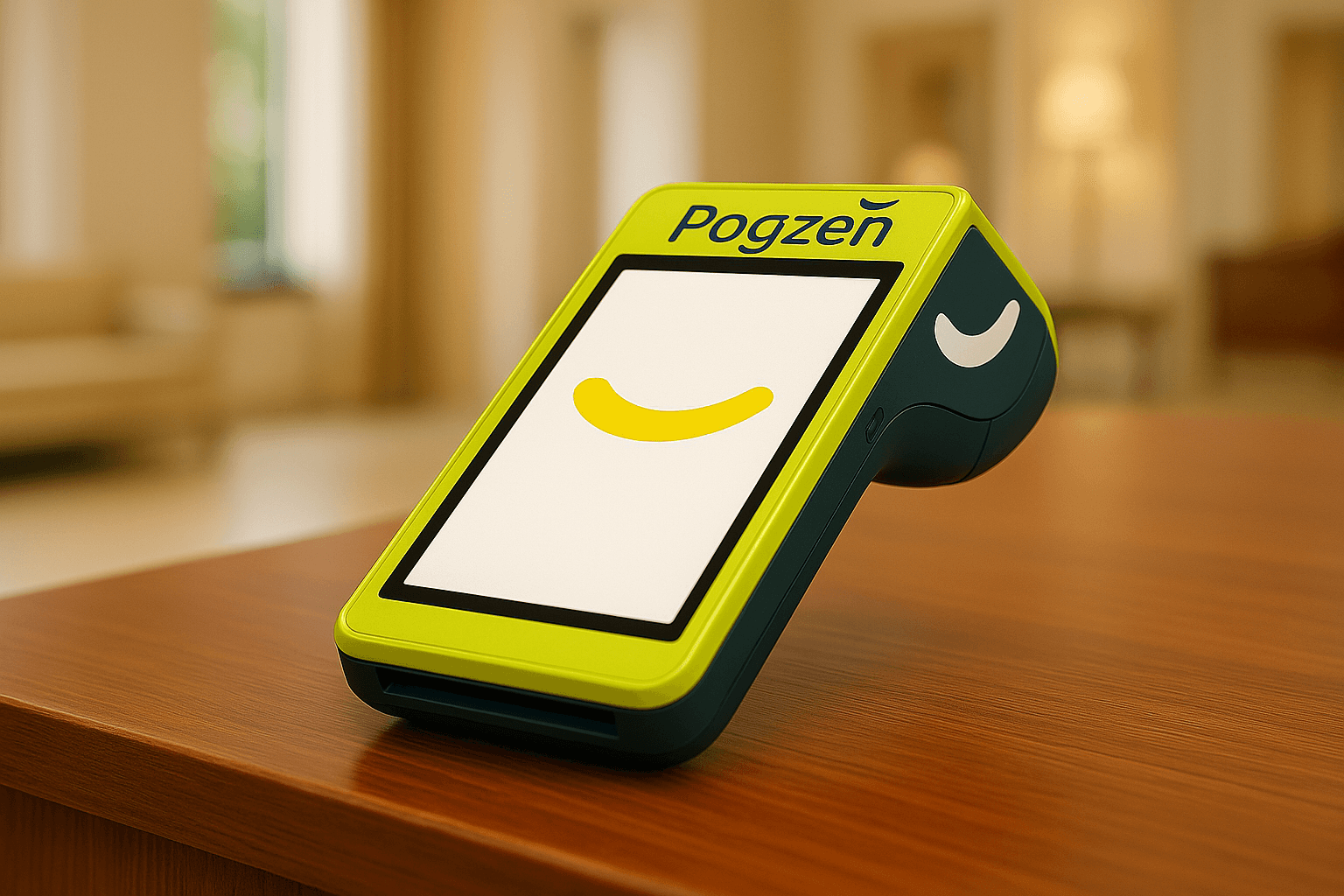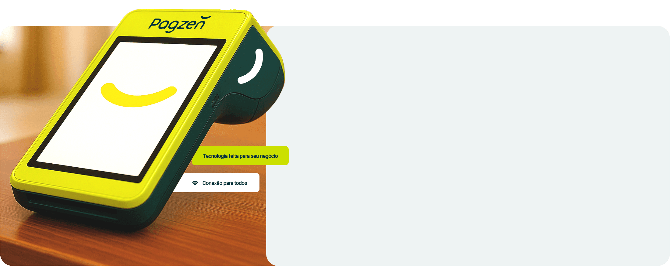 Totem exclusivo da Pagzen no balcão, oferecendo uma jornada de pagamento prática, discreta e moderna