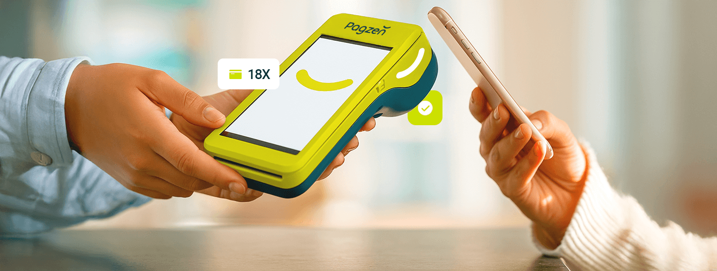 O Totem Pagzen transforma a experiência de pagamento no balcão: seu cleinte escolhe se quer parcelar, em até 18x, com total autonomia e clareza, sem constrangimentos ou surpresas.